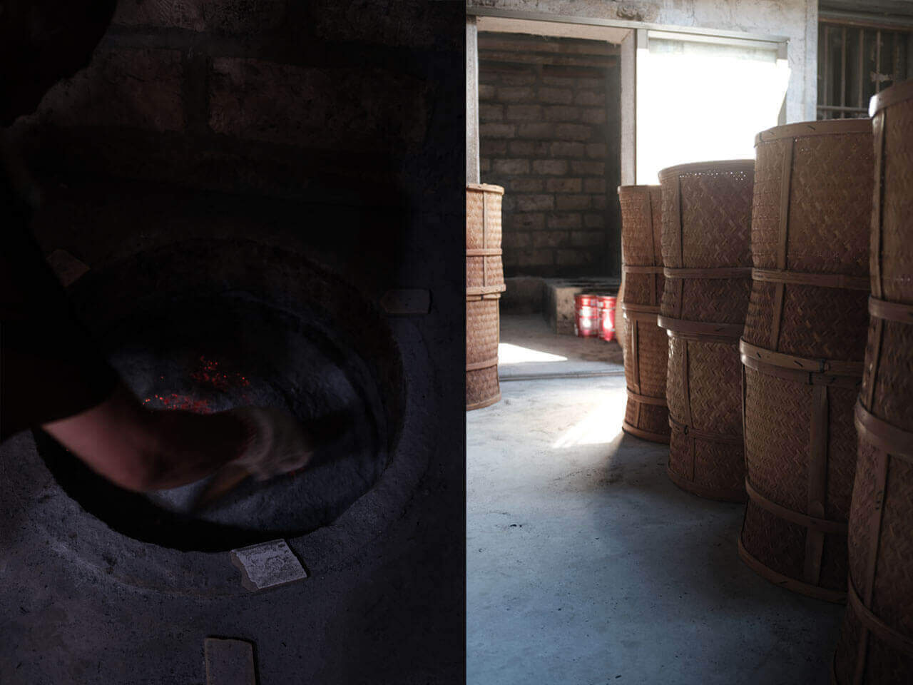 整个炭焙过程只能全以人工进行,时间较长,不能出错。现今正值十一月,焙茶间里却十分闷热,师傅挥汗如雨,只能不停地用毛巾擦拭。